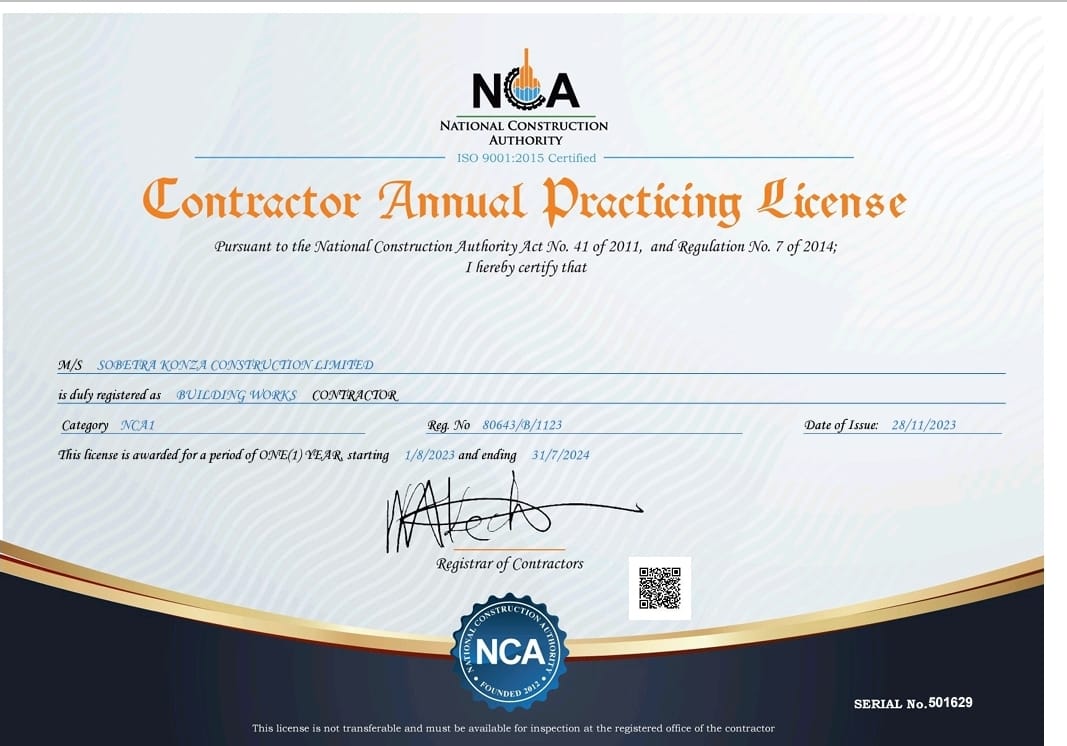 Registration Certificate: Building Works Contractor